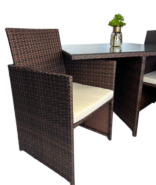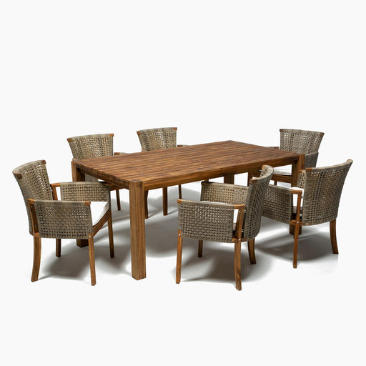 Ver todos los detallesEl comedor de terraza Río es la mejor opción para completar la decoración de tu espacio exterior. Este hermoso juego está compuesto por una gran me...