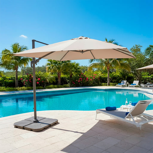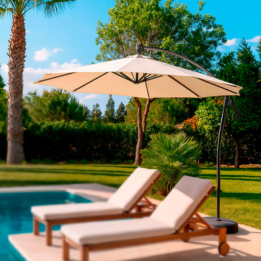 Ver todos los detallesEl quitasol Banana Hanging es una innovadora sombrilla de jardín con una estructura de aluminio y un tapiz de poliéster resistente al agua y los ra...